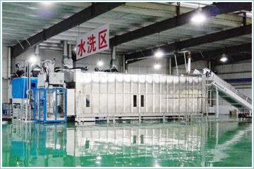 引進德國進口簡森全自動化洗滌生產線,實現紡織品分揀、洗滌、脫水、烘干、燙平、折疊、傳輸自動化,節水、節能、節省用工。